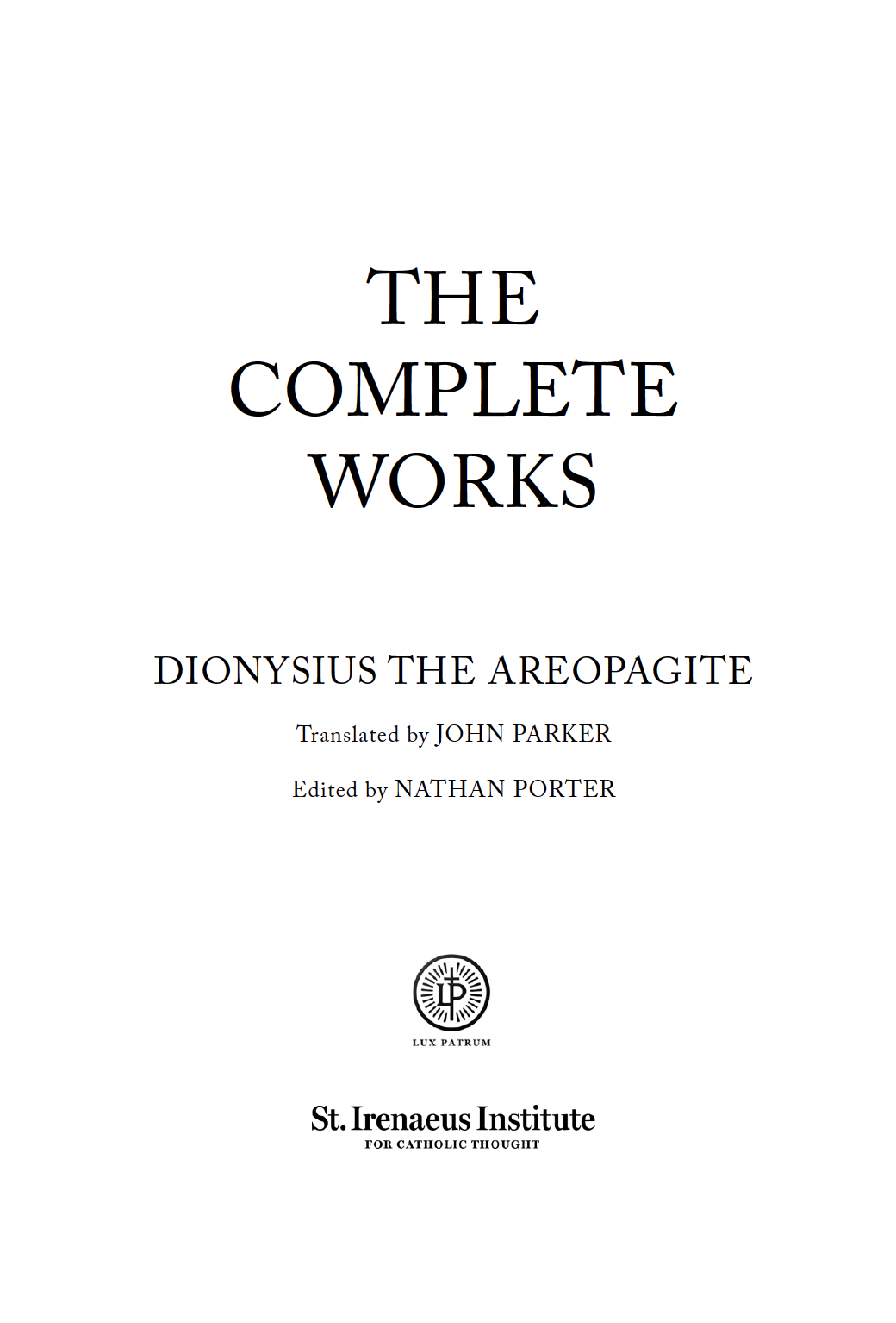 “The Lux Patrum edition of the Dionysian Corpus is an excellent instrument to engage one of the most influential sets of writings for Christian Theology from the first millennium. The handsome arrangement of Greek-English facing translation, utilizing the still useful translation of the Rev. John Parker, will be of immense benefit for study of the depth and breadth of the Areopagite’s Christian vision of the cosmos.”