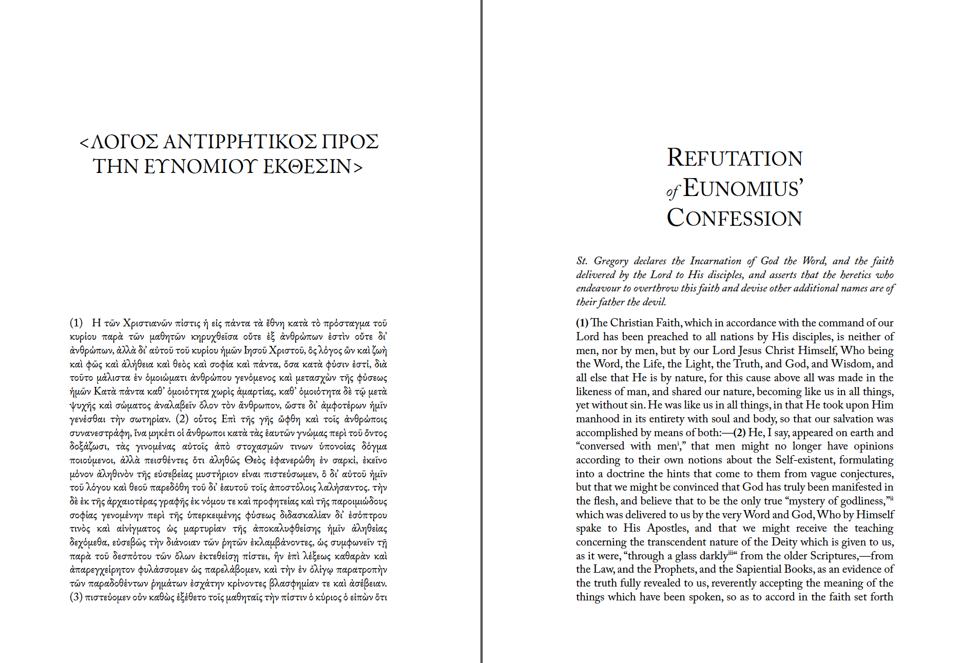 Gregory of Nyssa’s Refutation of Eunomius (Refutatio Confessionis Eunomii) is an incisive summary of his Trinitarian doctrine, and a key statement of pro-Nicene doctrine. Written in response to Eunomius’ radical Heteroousian theology, the treatise offers a sustained defense of the Nicene faith and a profound exploration of the mystery of the Trinity. Gregory combines philosophical insight with theological depth, refuting Eunomius’ claim to rationally comprehend the divine essence and affirming instead the inexhaustible mystery of God revealed in Christ.